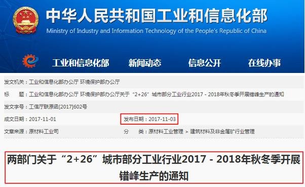 正文摘要:11月3日,工信部、環保部聯合發布了“關于‘2+26’城市秋冬季錯峰生產”的通知。通知明確:鋼鐵行業限產4個月、焦化限產6個月,重污染期間停產。鑄造業除電、氣爐外,全部停產4個月;水泥行業、燒結磚瓦窯、陶瓷、玻 ... |