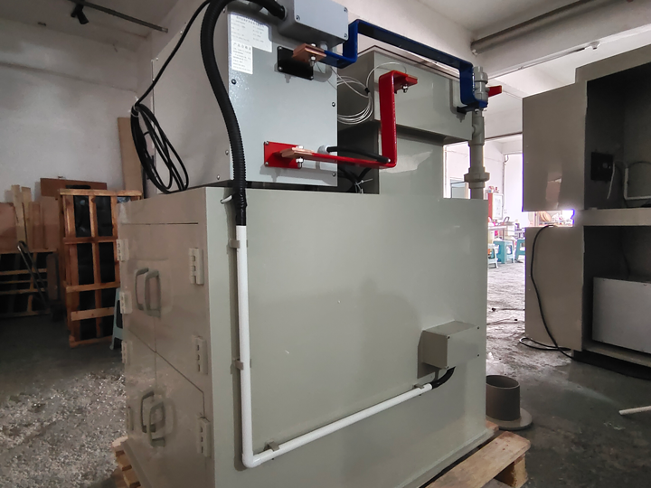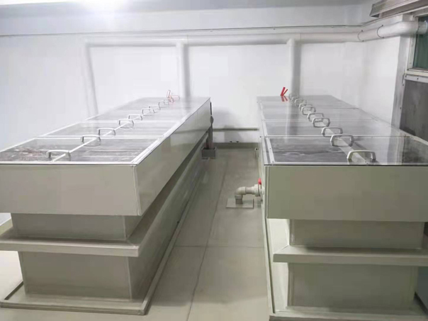 一新式碲電解簡介、現有精碲電解大都使用傳統電解槽。電解時,傳統電解槽的陰極板與側面碲排的接觸大都為小面積的點接觸,導致接觸電阻大,電解槽壓高,電流效率低;傳統的電解槽只有電解部分不涉及清洗工序,功能有限。傳統的精碲電解槽具有自動化程度低、功能有限、電流效率低、清洗工序環境污染大、人工清洗效果較差以及成本高等缺陷,不能滿足精碲生產的工業化需求。